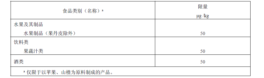 GB2761—2011食品安全國家標準食品中真菌毒素限量規(guī)定了食品中展青霉素限量指標。
