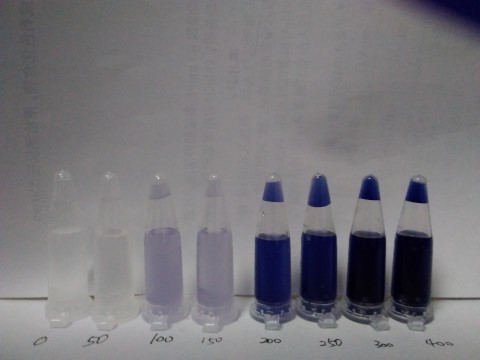取0.5mL樣品液于離心管中,加入1 mL的檢測試劑,試劑立即與食鹽中的碘發(fā)生化學反應而顯色.