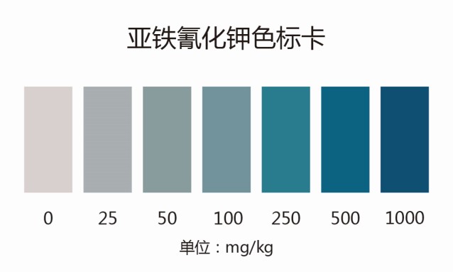比色管顏色藍(lán)色越深,亞鐵氰化鉀含量越高。