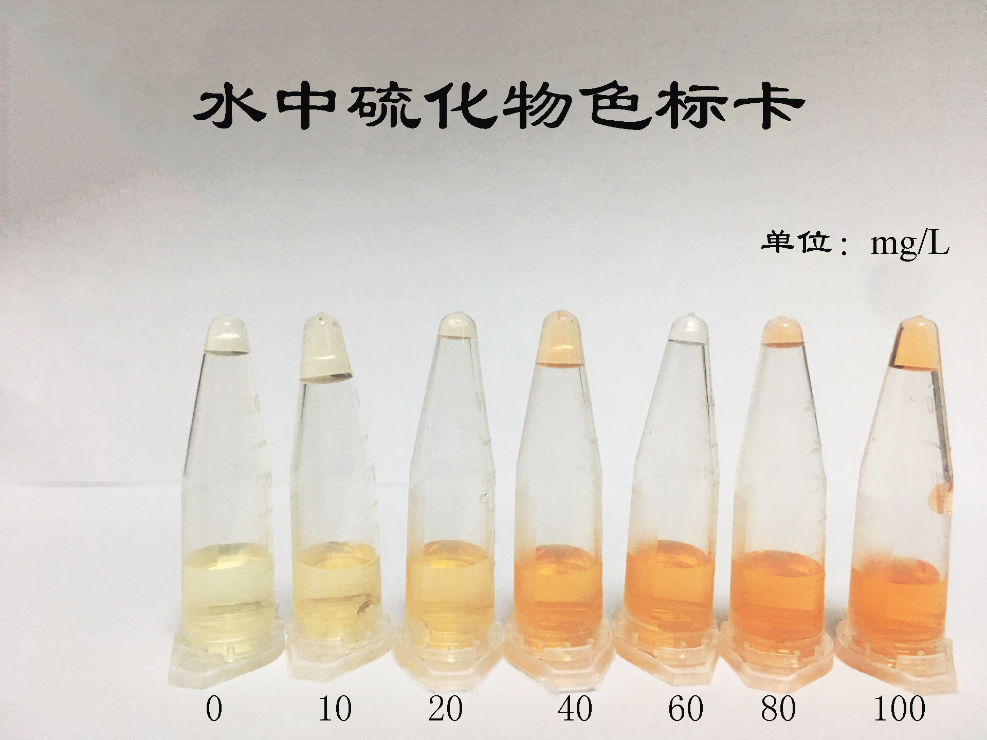 2.2:呈現(xiàn)深黃色和深橘色為硫化物(S2-)陽性結果,橙色深度與硫化物的濃度成正比,檢出限1 mg/kg,(1 ppm)。橙色越深表明味精硫化鈉含量越高。(見比色卡)