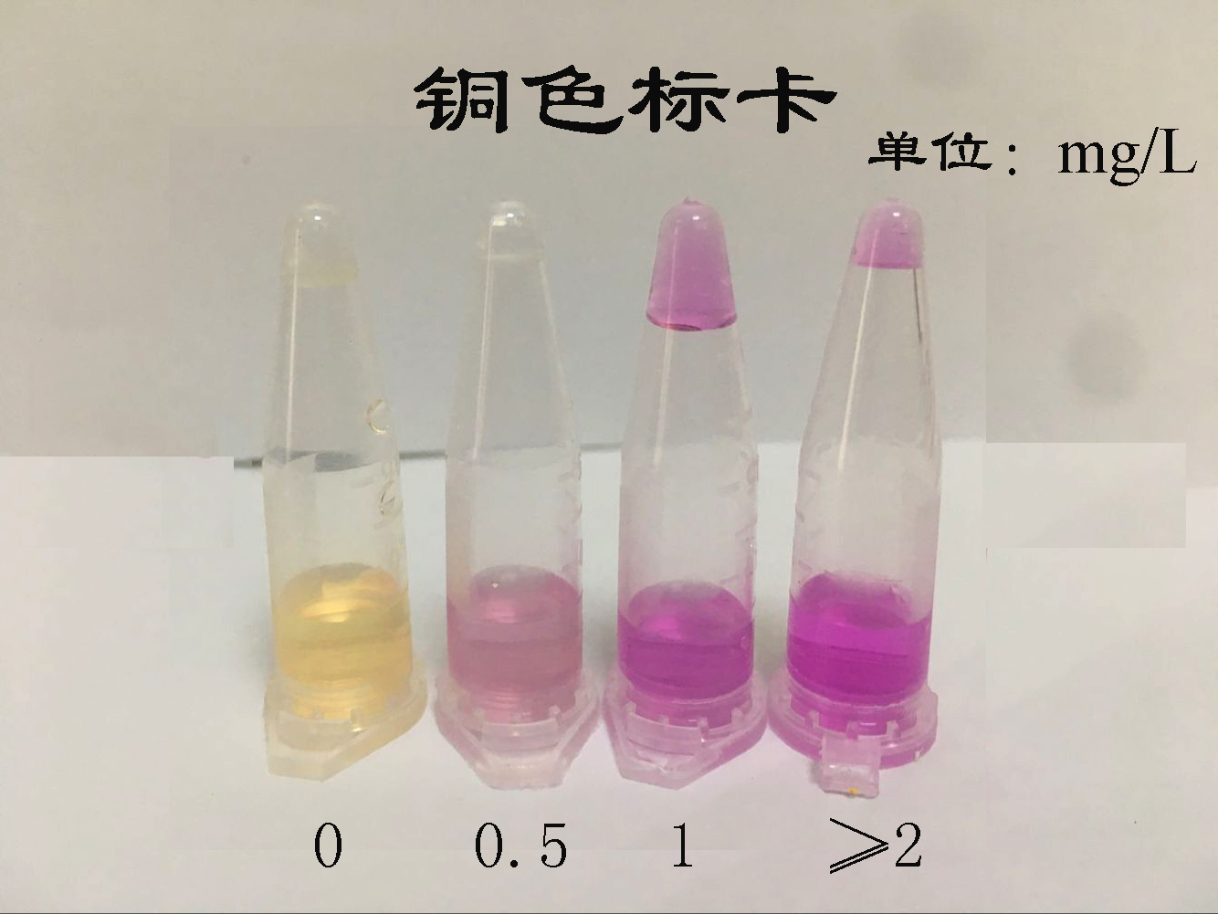2.2:若水溶液呈紫色,說(shuō)明溶液中存在銅元素。顏色深淺與含量成正比。(見(jiàn)比色卡)