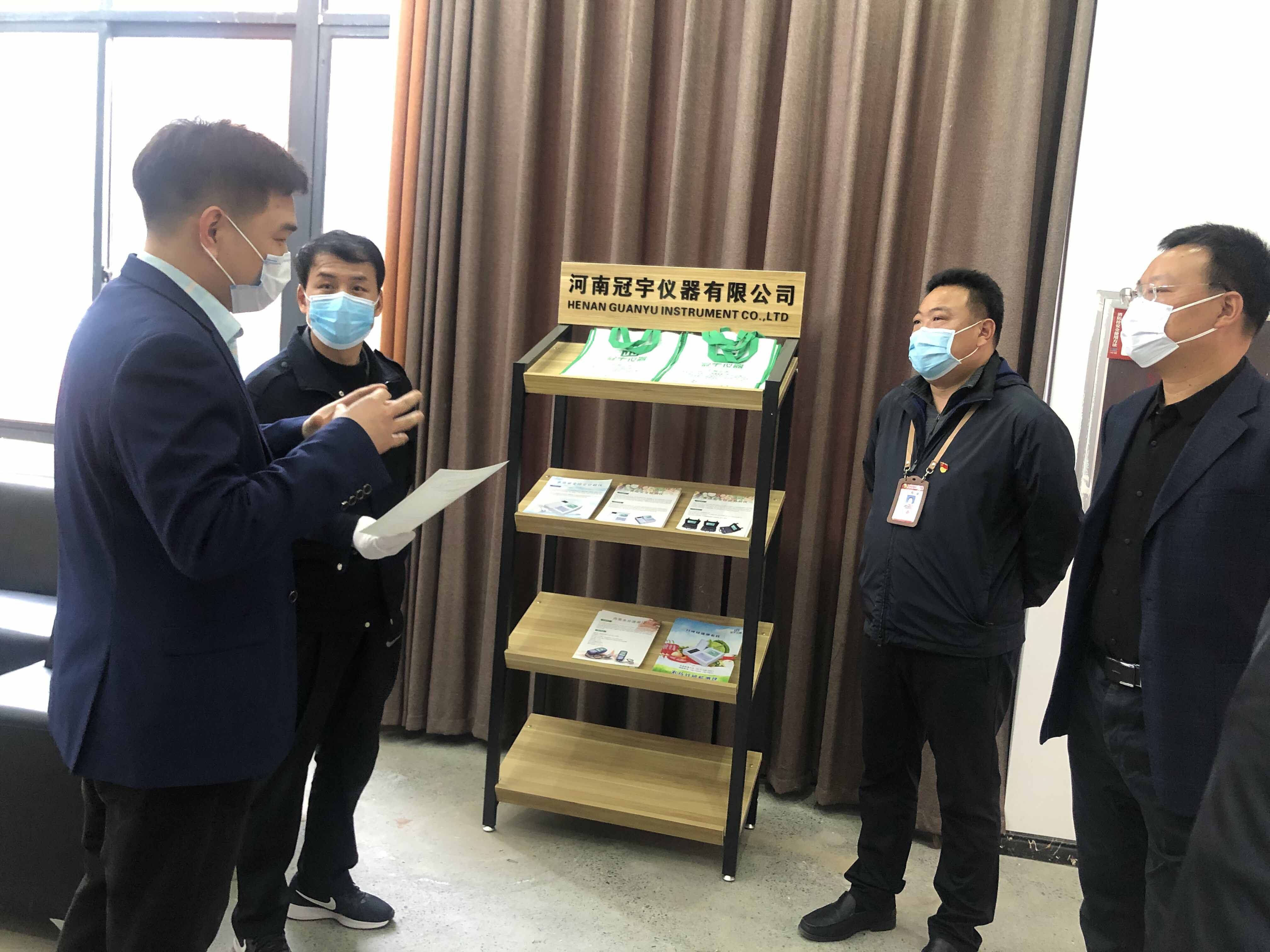 2020年3月16日下午,新鄭市黨委苗瑞光、薛店鎮(zhèn)書記安廣濤一行,下午來河南冠宇儀器有限公司參觀考察,公司總經(jīng)理許世偉熱情接待??疾炱陂g,各位領(lǐng)導(dǎo)參觀生產(chǎn)車間和研發(fā)實(shí)驗(yàn)室,許世偉總經(jīng)理詳細(xì)匯報(bào)了公司的產(chǎn)品的原理、技術(shù)先進(jìn)性、產(chǎn)品推廣現(xiàn)狀及國內(nèi)外前景等,期間新鄭市黨委苗瑞光就產(chǎn)品科技創(chuàng)新、節(jié)能效益分析等問題仔細(xì)詢問,總經(jīng)理都一一解答。