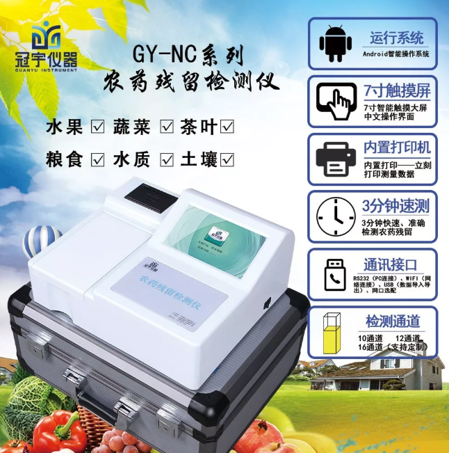 河南冠宇儀器有限公司生產(chǎn)農(nóng)藥含量檢測儀三分鐘檢測農(nóng)藥殘留含量,農(nóng)藥含量檢測儀三分鐘快速檢測檢測蔬菜、水果、糧食、茶葉以及土壤中有機(jī)磷和氨基甲酸脂類農(nóng)藥殘留的快速檢測;廣泛應(yīng)用于各級政府蔬菜檢測中心、農(nóng)貿(mào)市場、超市、環(huán)保機(jī)構(gòu)、蔬菜種植基地、飯店、車載及實(shí)驗(yàn)室等食品安全檢測與監(jiān)控場所等單位農(nóng)藥殘留的檢測。