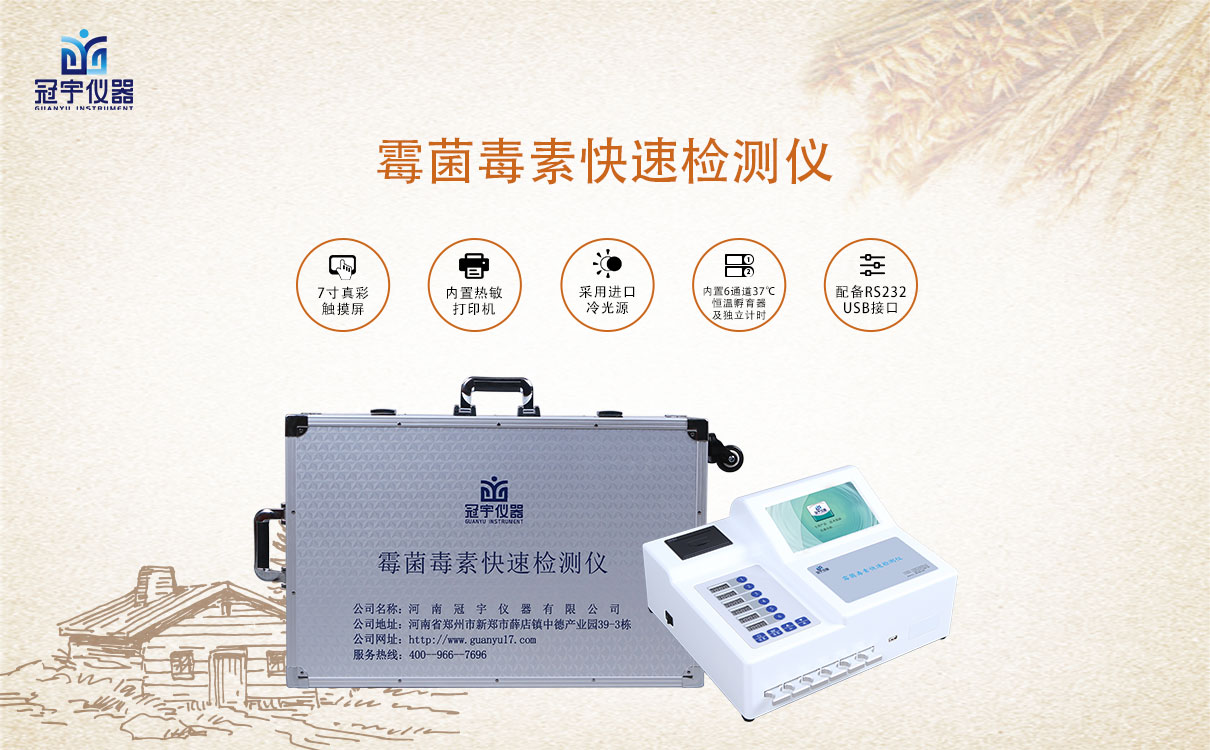 發(fā)霉的食物對人身體危害,冠宇儀器霉菌毒素快速測試儀能夠快速定量檢測糧食、飼料、谷物、食用油、調(diào)味品等食品中黃曲霉毒素、T2毒素、嘔吐毒素、赭曲霉毒素、伏馬毒素、玉米赤霉烯酮含量,適用于糧油監(jiān)測中心、糧油飼料生產(chǎn)加工、食品加工貿(mào)易、畜禽養(yǎng)殖戶自查、工商質(zhì)監(jiān)部門用于市場快速篩查等維護我們的食品安全。