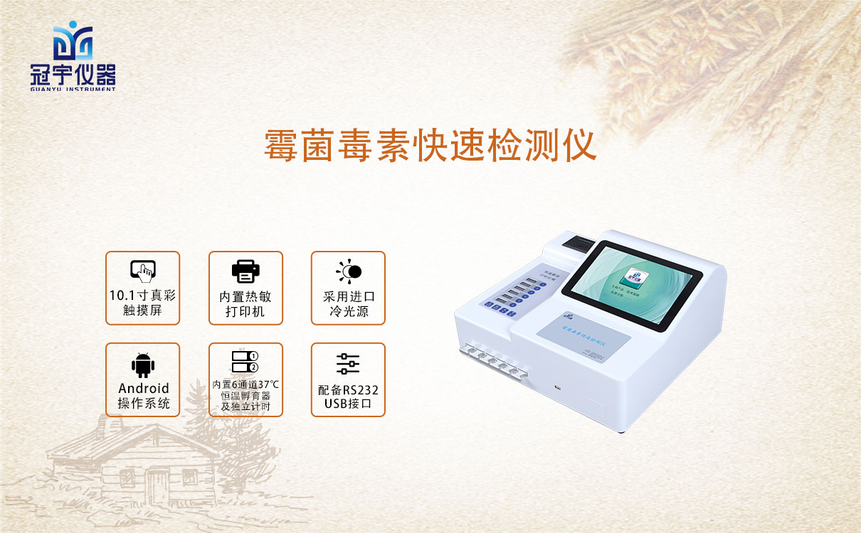 河南冠宇儀器生產(chǎn)的霉菌毒素快速測試儀能夠快速定量檢測糧食、飼料、谷物、食用油、調(diào)味品等食品中黃曲霉毒素、T2毒素、嘔吐毒素、赭曲霉毒素、伏馬毒素、玉米赤霉烯酮含量。