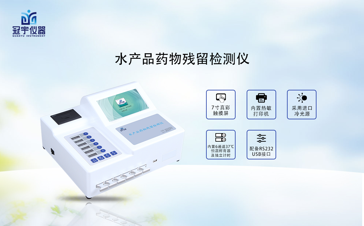 利用冠宇儀器水產(chǎn)品藥物殘留檢測儀對螃蟹日?;蛞诪E用的獸藥的殘留情況進(jìn)行檢測。冠宇儀器水產(chǎn)品藥物殘留檢測儀應(yīng)用競爭抑制免疫層析的原理,通過檢測線熒光定量卡中的熒光強(qiáng)弱程度,定量分析待檢樣品中孔雀石綠殘留、呋喃類、氯霉素、氟喹諾酮、四環(huán)素等多個藥物殘留。
