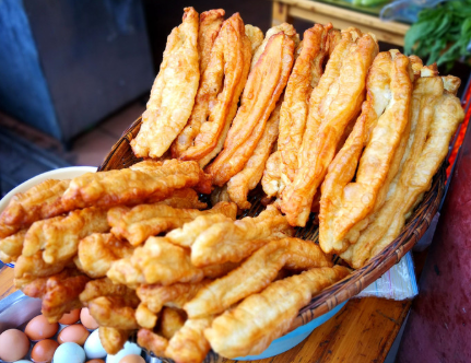 油條以小麥粉和水為主要原料,以膨松劑為主要輔料,經(jīng)面團調(diào)制、醒發(fā)、成型、油炸而成,外皮酥脆且內(nèi)里松軟多孔,色澤金黃、咸香適口,是我國傳統(tǒng)的早餐食品和大眾化小吃,但食用也有講究。