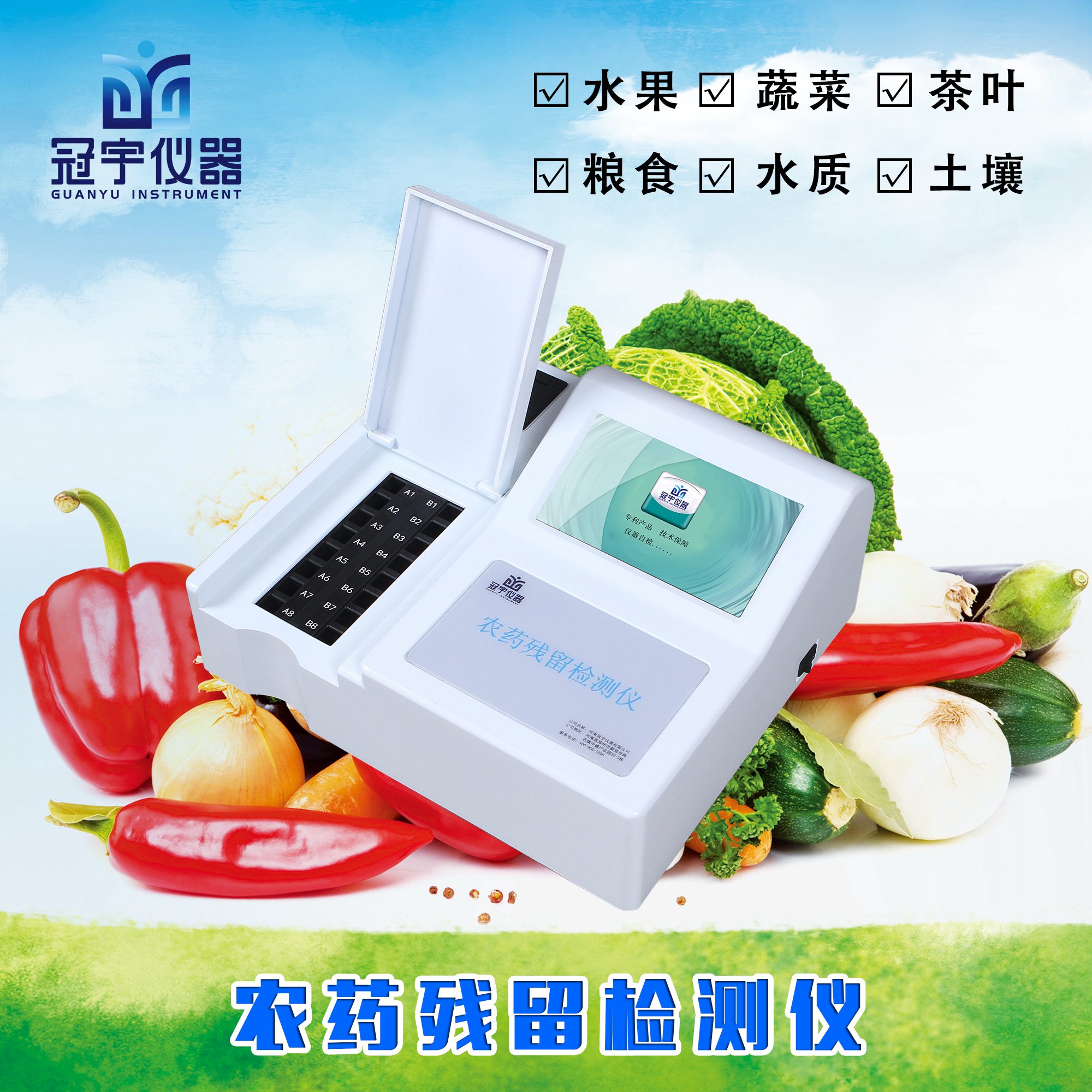 針對(duì)農(nóng)藥殘留是否超標(biāo)這一問(wèn)題,河南冠宇儀器研制出一款通用廣泛性好的農(nóng)藥殘留檢測(cè)儀,可以有效地對(duì)蔬菜中有機(jī)磷和氨基甲酸酯這兩大類農(nóng)藥殘留進(jìn)行快速檢測(cè)。滿足多品種、多場(chǎng)合、多地域使用,也可廣泛應(yīng)用于各級(jí)政府蔬菜檢測(cè)中心、農(nóng)貿(mào)市場(chǎng)、超市、環(huán)保機(jī)構(gòu)、蔬菜種植基地、飯店、車載及實(shí)驗(yàn)室等食品安全檢測(cè)與監(jiān)控場(chǎng)所等單位。
