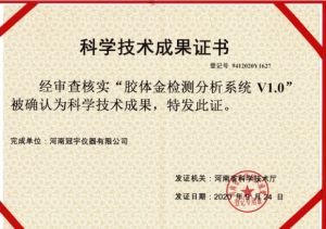 河南冠宇儀器有限公司(以下簡稱:冠宇儀器)繼多項軟件著作權(quán)證書、實用新型專利證書、計算機軟件著作權(quán)等一系列證書之后,又獲由河南省科學技術(shù)廳頒發(fā)的一項“膠體金檢測分析系統(tǒng)V1.0科學技術(shù)成果證書”,一系列的權(quán)威肯定,彰顯了冠宇儀器強大的技術(shù)研發(fā)能力,也體現(xiàn)出公司為客戶提供優(yōu)質(zhì)產(chǎn)品的強大決心。
