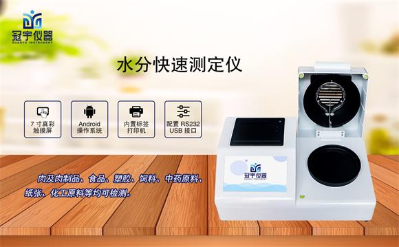 冠宇儀器食品水分測定儀在檢測樣品時(shí)可以做到表面不易受損,其檢測結(jié)果與國標(biāo)烘箱法具有良好的一致性,具有可替代性,且檢測效率遠(yuǎn)遠(yuǎn)高于烘箱法。快速水分測定儀智能化操作,一般樣品只需幾分鐘即可完成測定,是一種新型的快速檢測儀器。 同時(shí)可廣泛應(yīng)用于一切需要快速測定水分的行業(yè),如,糧食、飼料、種子、菜籽,脫水蔬菜、煙草、化工、茶葉、食品、肉類以及紡織,農(nóng)林、造紙、橡膠、塑膠、紡織等行業(yè)中的實(shí)驗(yàn)室與生產(chǎn)過程中對(duì)水分測定的要求;同時(shí)滿足固體、顆粒、粉末、膠狀體及液體含水率的測定。
