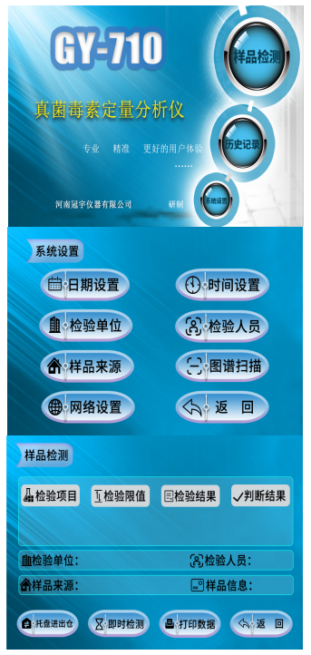 點擊圖-2可以進行選擇【日期設(shè)置】【時間設(shè)置】【網(wǎng)絡(luò)設(shè)置】【檢驗單位】【檢驗人員】【樣品來源】