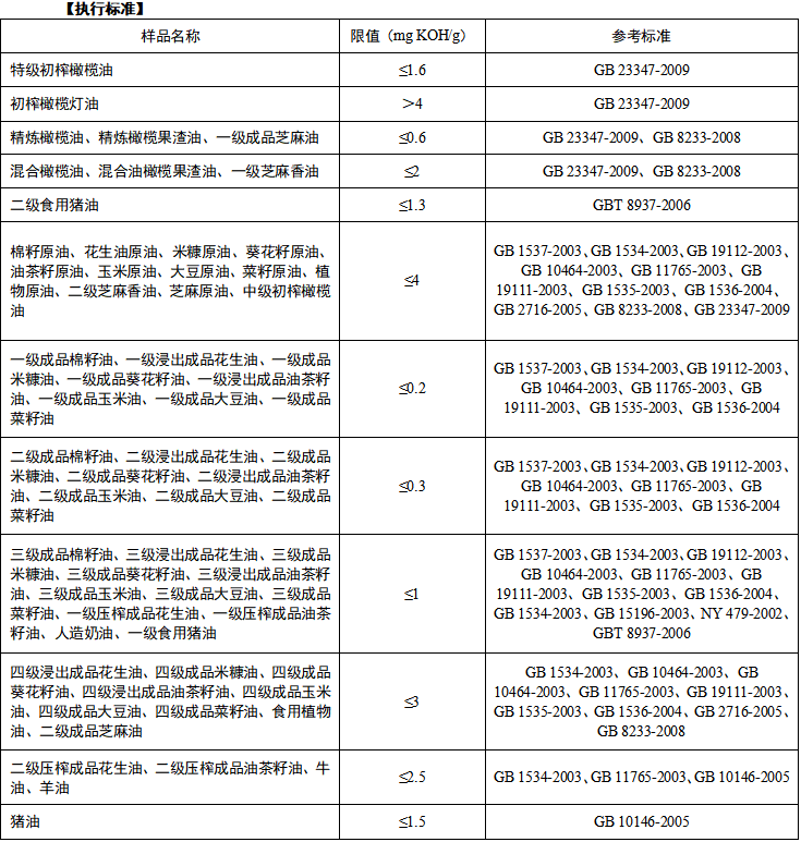 油脂在貯存期間,由于微生物、水分、溫度、光照、脂肪酶等因素的作用發(fā)生緩慢水解,產(chǎn)生游離脂肪酸,其置于油中使酸價增大,貯存穩(wěn)定性降低。酸價可作為油脂脂肪水解程度的指標(biāo),亦可作為酸敗程度的指標(biāo)。酸價越小,即油脂質(zhì)量越好,精煉程度和新鮮度越好。一般要求食用植物油的酸價不得>5 mg KOH/g,酸價略高不會對人體健康產(chǎn)生損害;但如果酸價過高,則會導(dǎo)致人體腸胃不適、腹瀉并損害肝臟,因此酸價測定結(jié)果的準(zhǔn)確性對人體健康非常重要。