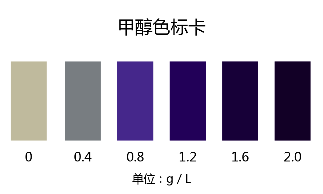 2.1:20分鐘后觀察孔中顏色的深淺,顏色越深,表示酒樣中甲醇的含量越高;(對(duì)照色卡上的標(biāo)示值可知酒樣中甲醇的大致含量)