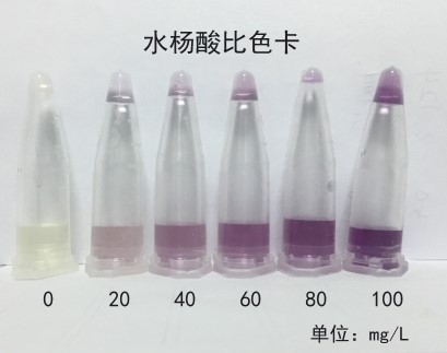 2.2:溶液呈紫色,說明溶液中含有水楊酸。溶液的顏色越深,濃度越高。(見色卡)