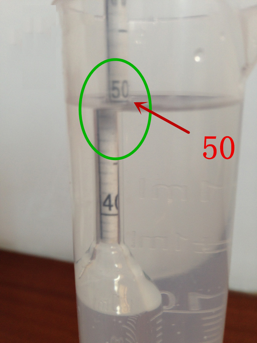 1.3:讀數(shù)按彎月面下緣讀數(shù),觀察者的眼睛應(yīng)稍低于液面,使看到的液面成橢圓形,然后慢慢抬高眼睛位置直至橢圓形變成一條直線為止,讀出此直線的分度表上的位置(下右圖為50);