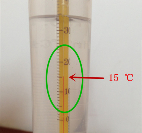 1.4:將溫度計(jì)放入量筒里不要貼筒壁,稍等片刻,目光平視看準(zhǔn)讀數(shù)(下左圖為15℃);