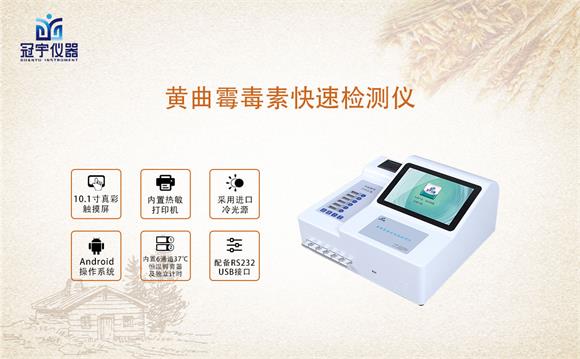 同時相應除了日常注意這些容易產(chǎn)生黃曲霉毒素的食品以外,也要注意其他食品的黃曲霉毒素檢控工作,冠宇儀器黃曲霉毒素快速測試儀GY-710通過檢測線熒光定量卡中的熒光強弱程度,定量分析待檢樣品中黃曲霉毒素B1殘留含量;黃曲霉毒素快速測試儀能夠快速定量檢測玉米、小麥、大米、大麥、小米和燕麥等谷物、飼料、面粉、食用油、調(diào)味品中黃曲霉毒素B1,適用于糧庫收糧檢測、糧油監(jiān)測中心、糧油飼料生產(chǎn)加工、食品加工貿(mào)易、畜禽養(yǎng)殖戶自查、工商質監(jiān)部門用于市場快速篩查等。